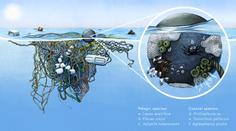 Very little is known about ocean plastic’s contribution to the spread of invasive species. Floating natural debris items, such as driftwood or pumice, have always served as a means of transportation for marine life. The difference is, these items sink or degrade after a relatively short period of time, whereas plastic debris items may remain floating on the surface for years or even decades. An increasing number of studies show that these rafting communities can survive for very long periods of time in the open ocean, and that repeated introductions of these communities to new ecosystems almost certainly contribute to new, permanent establishments of rafting species there. What we don’t know is how often this occurs, the chances that new establishments will occur, and where the impacts are most likely to happen. This is where our model aims to shed some light!